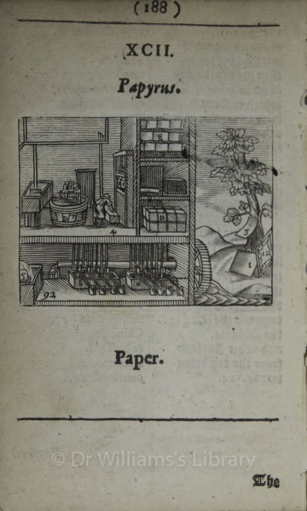 [32] In 1670, Daniel Cable translated (the possibly fictional) Valentinus Basilius’ alchemical tract Of natural & supernatural things, which charts the progress of seed to flax to fabric to paper. The full title of his translation, which promises to reveal ‘the first tincture, root, and spirit of metals and minerals, how the same are conceived, generated, brought forth, changed, and augmented’, suggests how paper could be read as representative of the transformations of matter. ‘When this Linnen is quite worn out’, Basilius tells us, ‘the old Rags are gathered together, and sent to the Paper-Mills’ (1670: H4r). But this is not the end of his material history: