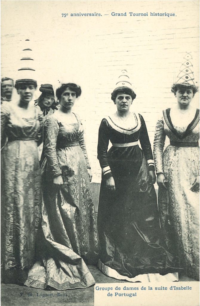 [15] Before proclaiming almost as a rule that ‘the point is not accuracy, but the thrill of contact with a mythic past’, Jay Winter writes, ‘re-enactments of historical events are bound to distort the past’ (2010: 18). While the tournament’s organisers would not have disagreed with this observation, they might have objected to the claims about the point of the exercise; as pointed out, however, their aspiration had been to carry both aspects through. The opening scene of the tournament was the only part that involved a re-enactment of a historical event: a joust held on Brussels’s central square on 20 February 1452, in celebration of the coming of age of Charles the Bold (1433-77), then Count of Charolais. To flesh out a fuller picture of mock fights at the ducal court of the mid-fifteenth century, subsequent segments based on broader preparatory research undertaken by Cuvelier were added to the re-enacted jousting scene (Scénario du tournoi de chevalerie 1905; Cheyns-Condé 1986).[13] For this reason, the performance lasted over three hours and featured more equestrian segments (such as a passage of arms and a quintain),[14] armed combat on foot with an assortment of weapons (swords, lances, and battle-axes), and a tournament with 531 participants as a grand finale, after which the victorious knights were lauded in keeping with chivalrous social codes. For instance, the Count of Charolais ceremoniously received a prize from one of the competition judges, his bride-to-be, Isabella of Bourbon (ca. 1434-65).